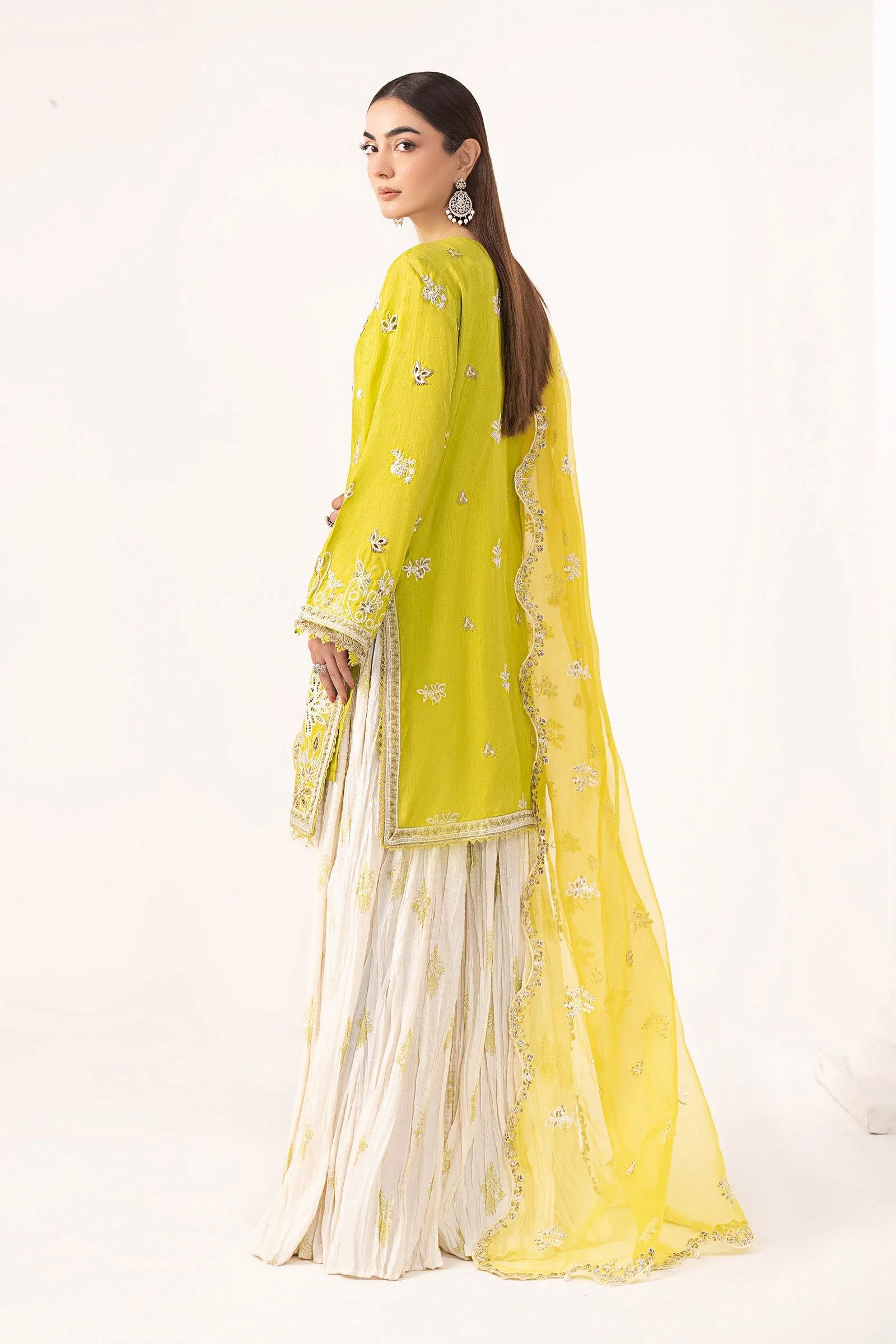 This versatile luxury suit is designed for Pakistan’s most celebrated occasions. From Eid ul Fitr gatherings to walima receptions and Iftar dinners, the Zilverah Acid Green Sharara Suit is your go-to for making a lasting impression. Women across Lahore, Karachi, and Islamabad are choosing this silhouette for its blend of cultural elegance and modern glamour.