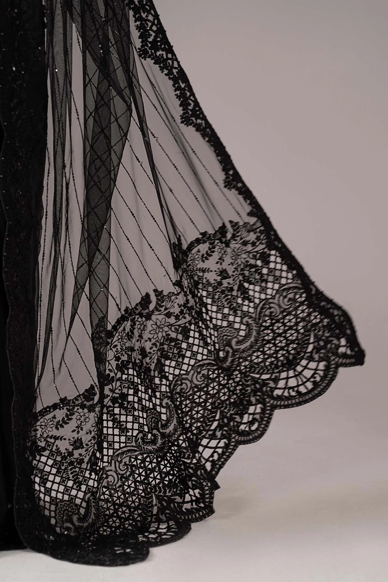 Zilverah Black Embroidered Net Saree – Party Wear Pakistan