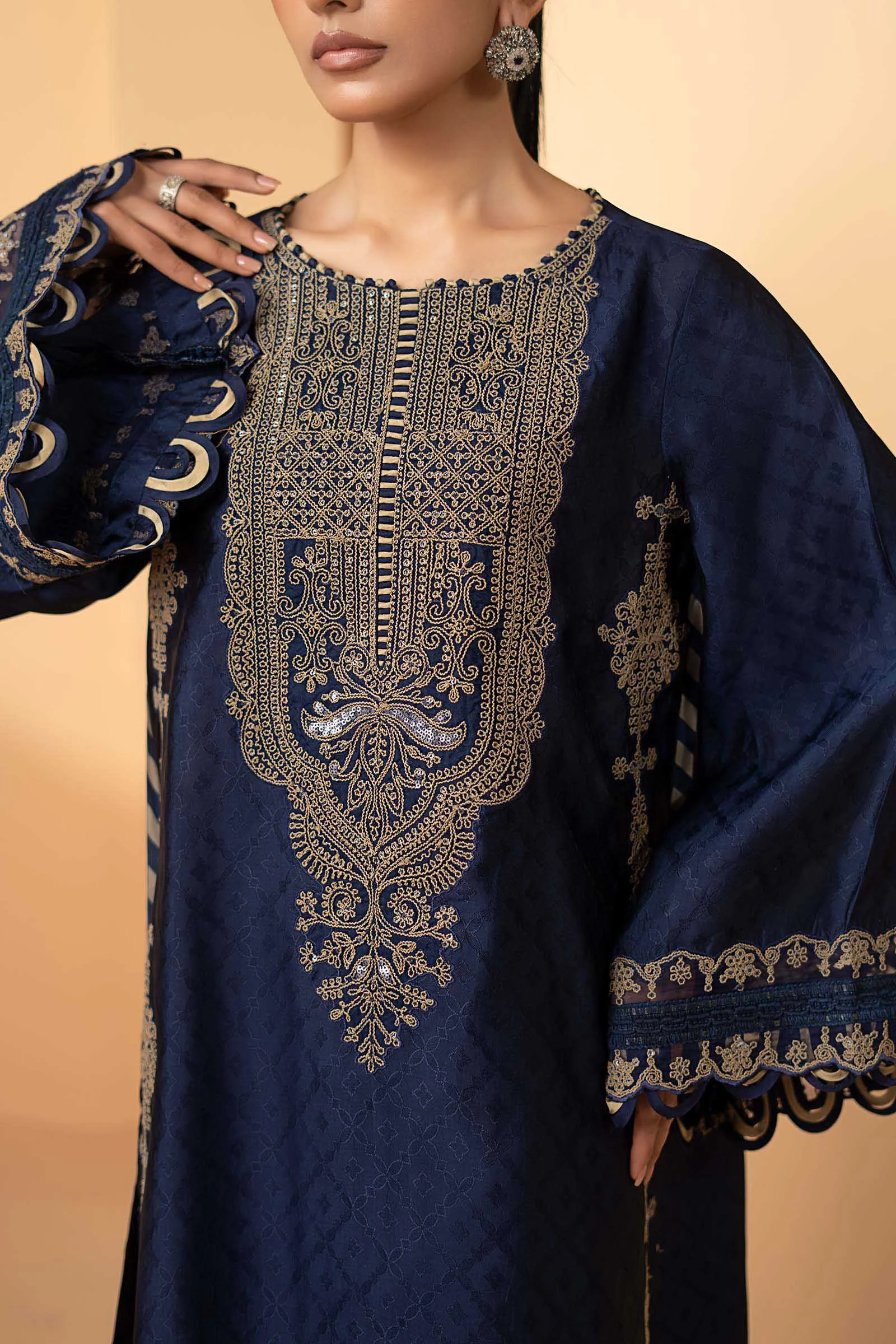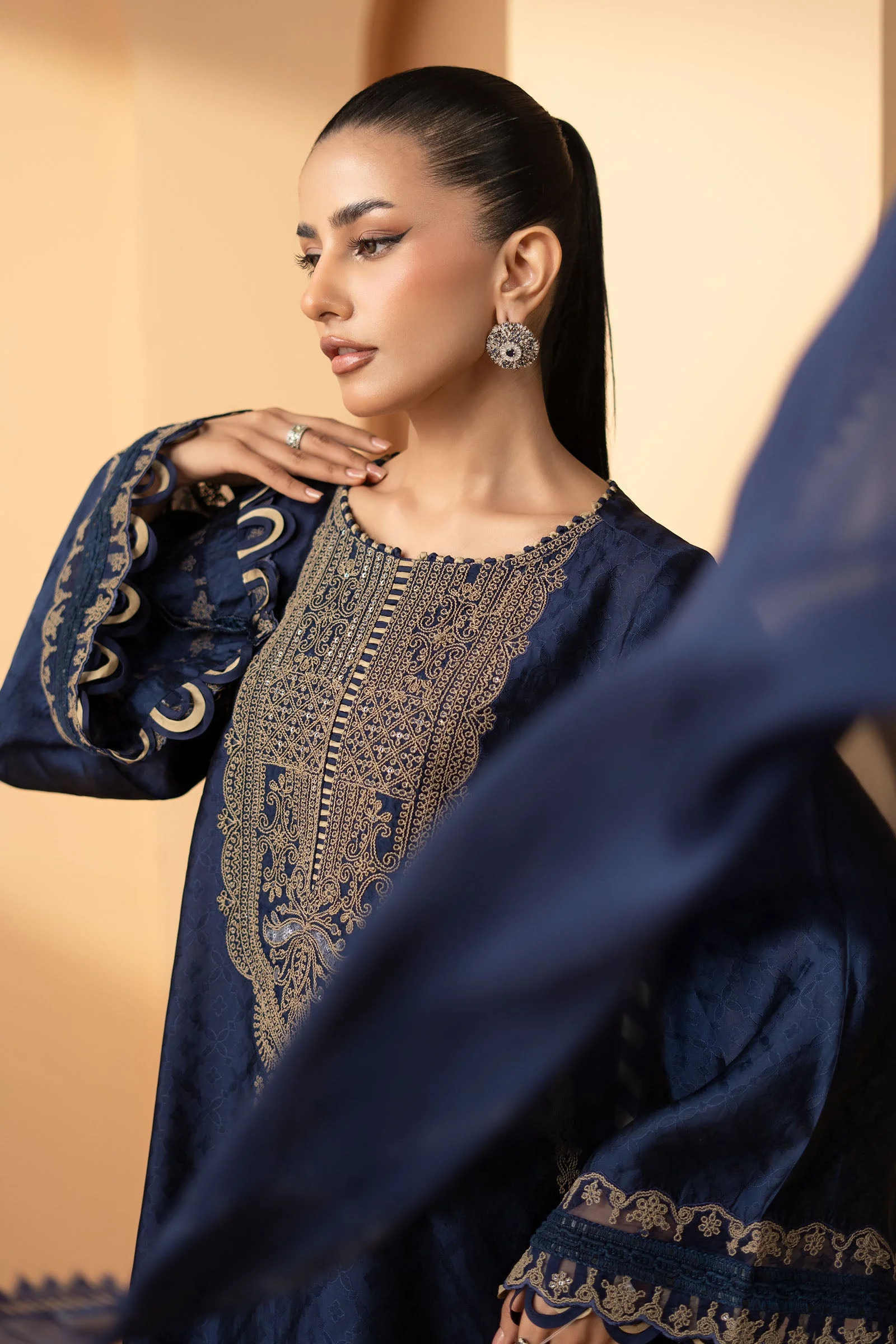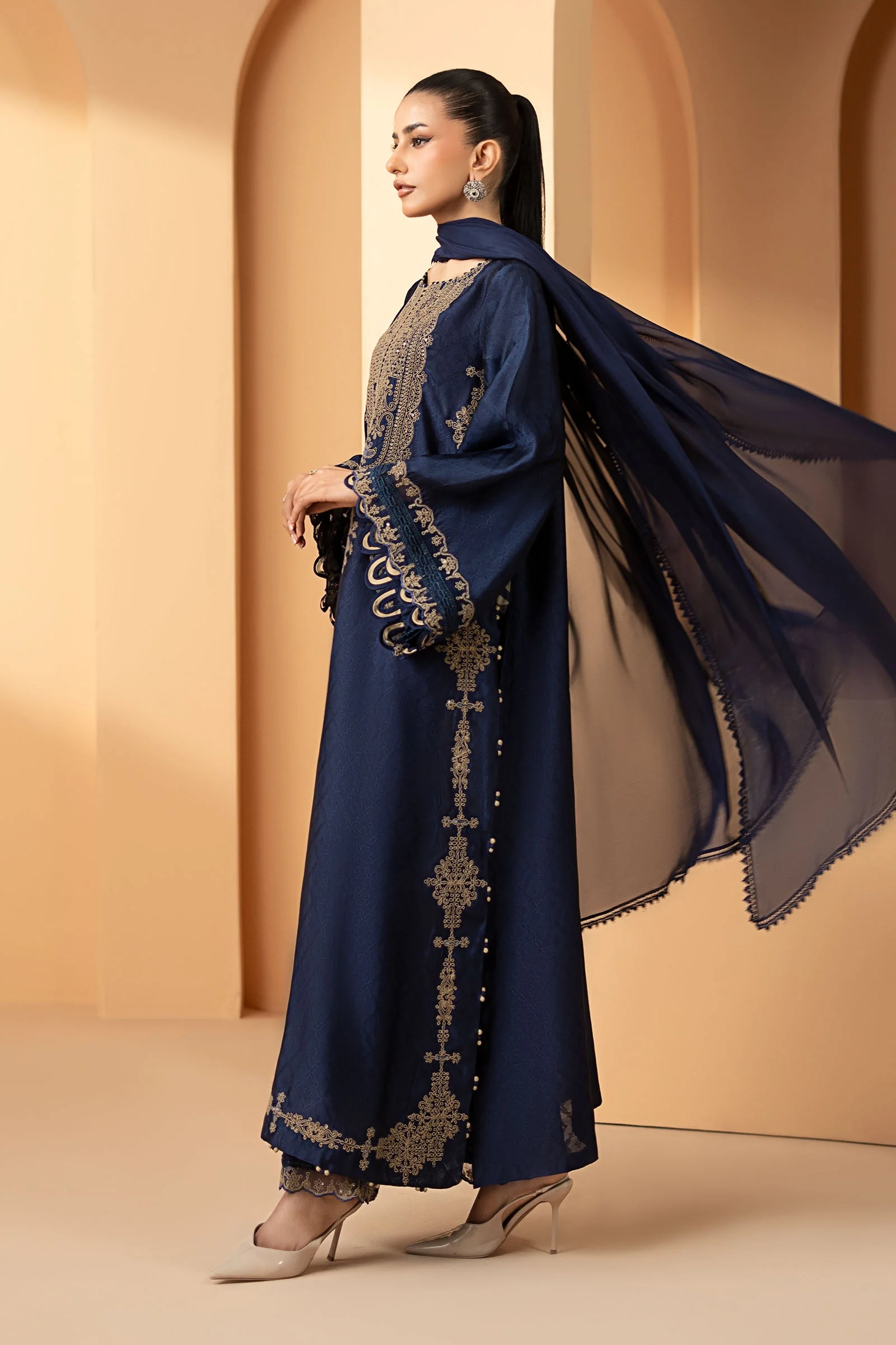 Discover the art of refined Pakistani fashion with Zilverah’s Blue Embroidered Self Tassel Silk 3-Piece Suit — a breathtaking party wear ensemble designed for the modern Pakistani woman who demands both luxury and grace. Whether you’re dressing for an Eid gathering, a formal dinner, or a wedding function, this meticulously crafted suit delivers a showstopping look that speaks the language of premium Pakistani dress online shopping.
