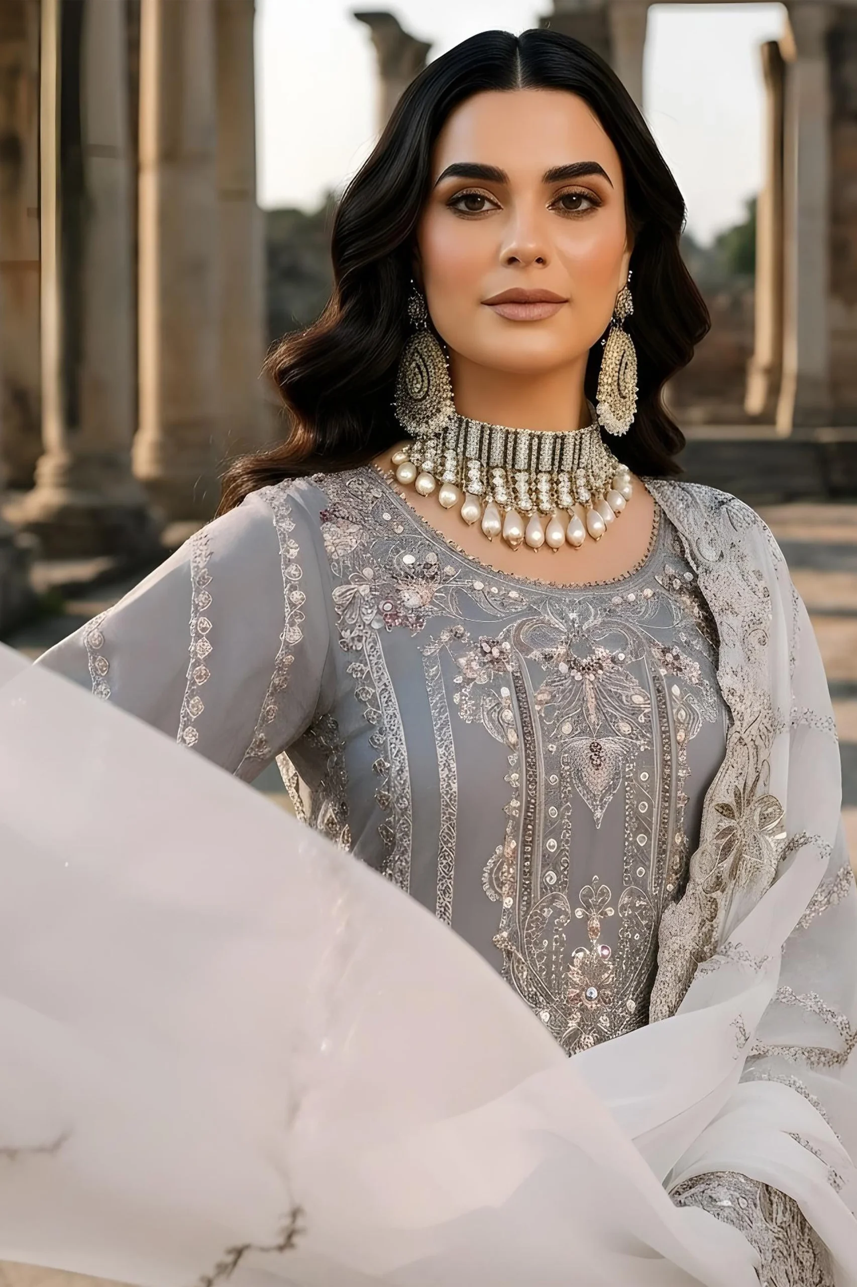 When it comes to making a lasting impression at any formal occasion, nothing speaks louder than a beautifully crafted party wear ensemble. Zilverah presents this exquisite embroidered pure bamber chiffon 3-piece suit in a refined dark grey palette — a sophisticated choice for Pakistani women who demand both artistry and comfort in their festive wardrobe. Whether you’re shopping from Lahore, Karachi, Islamabad, or anywhere across Pakistan, this luxury formal suit is now available for convenient Pakistani dress online shopping at Zilverah.