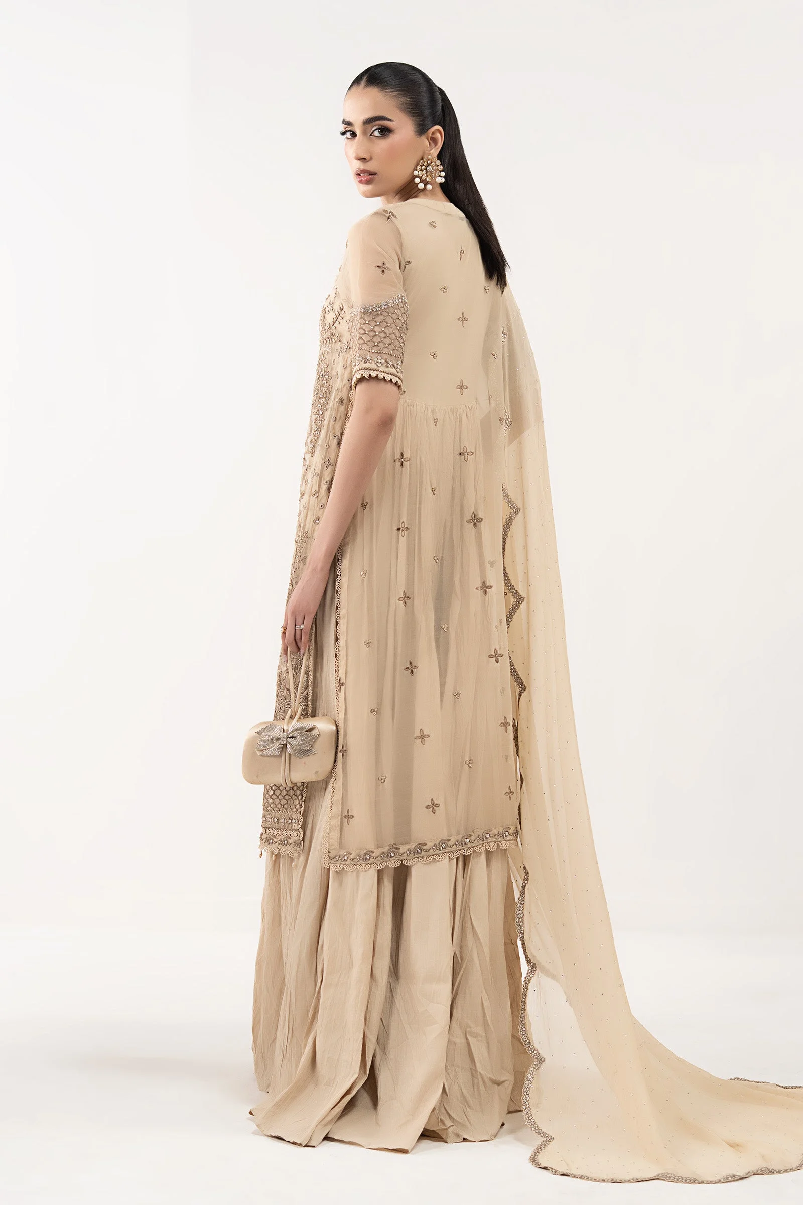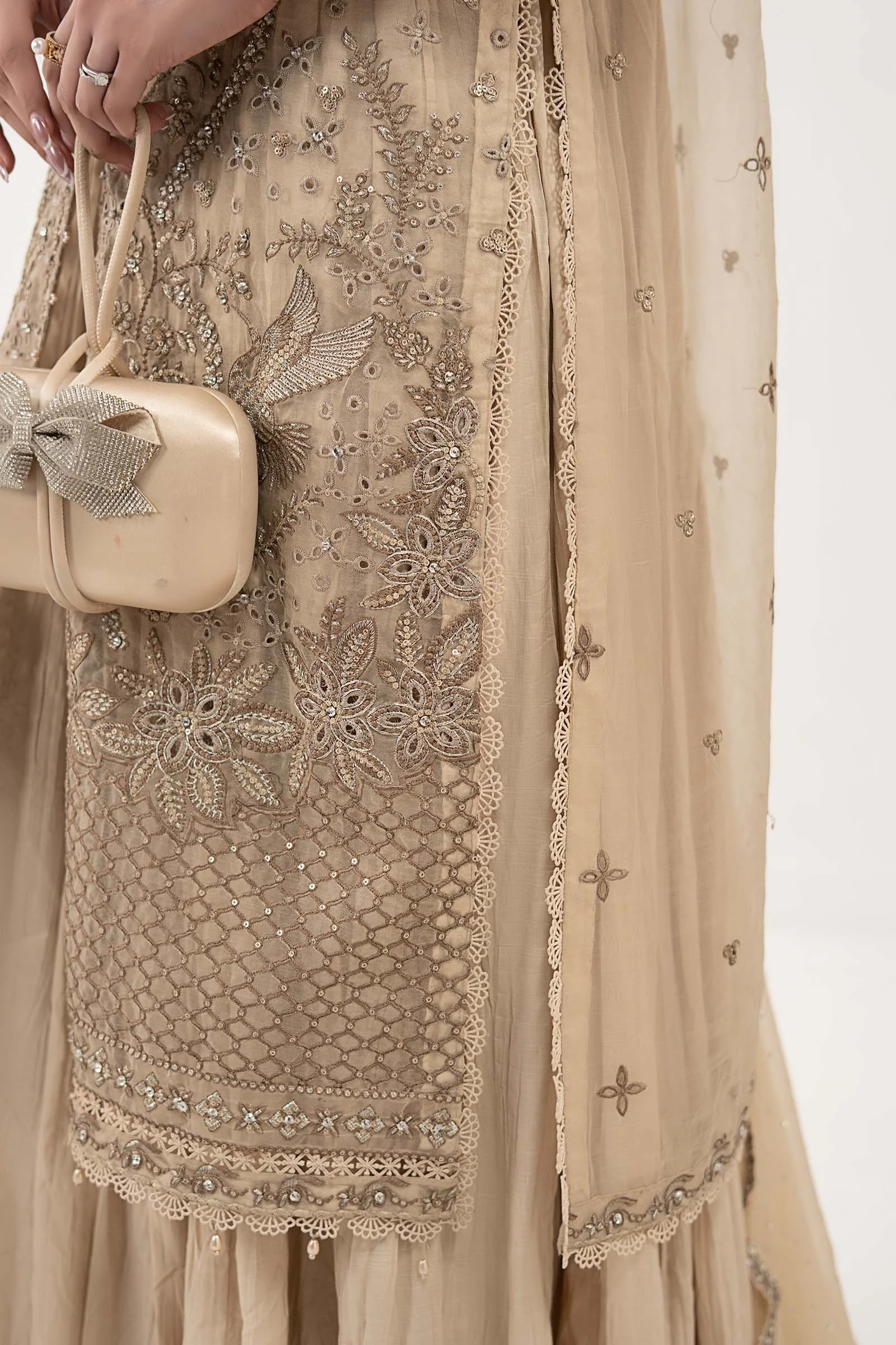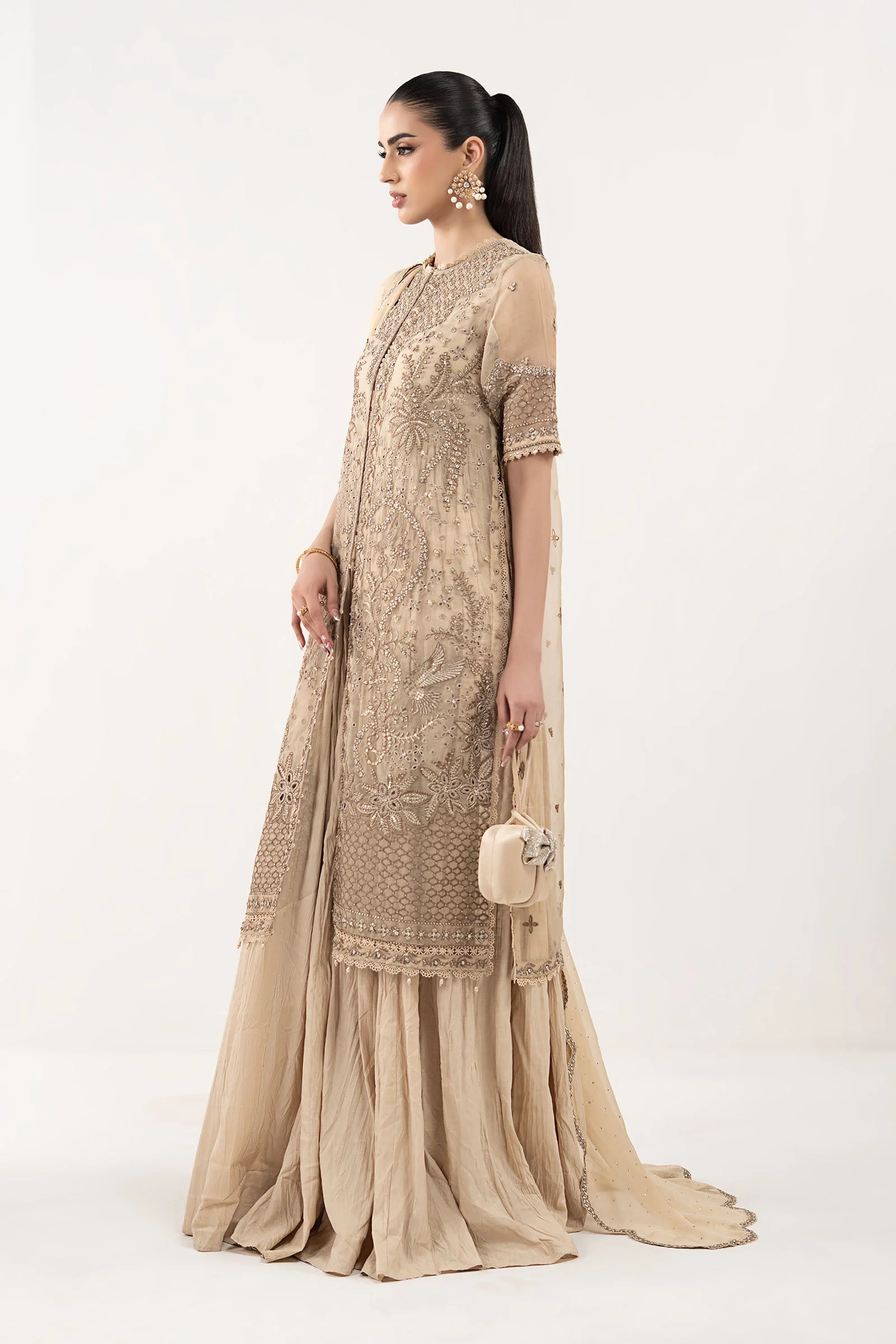 Elevate your wardrobe with this stunning 3-piece embroidered organza formal wear suit from Zilverah — crafted in rich coffee brown with intricate hand-embellished detailing, pearl accents, and delicate lace borders. The front-open jacket, raw silk undershirt, and scalloped dupatta make this an effortlessly regal ensemble perfect for Eid, weddings, and festive evenings. Order now and enjoy free delivery across Pakistan on orders above PKR 10,000!