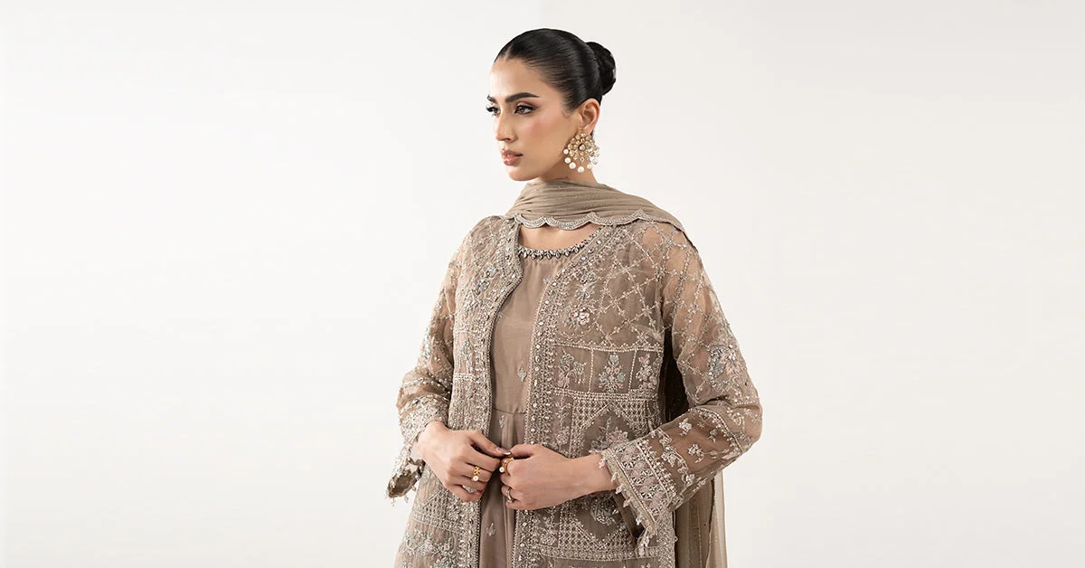 Discover the perfect party wear statement with Zilverah’s exquisite 3-Piece Embroidered Organza Suit — a masterpiece in coffee brown that blends contemporary silhouettes with timeless Pakistani craftsmanship. Whether you’re dressing for a wedding, an Eid celebration, or a formal evening soirée, this luxurious ensemble delivers unmatched elegance. Available for Pakistani dress online shopping with fast, reliable delivery to Lahore, Karachi, Islamabad, and beyond.