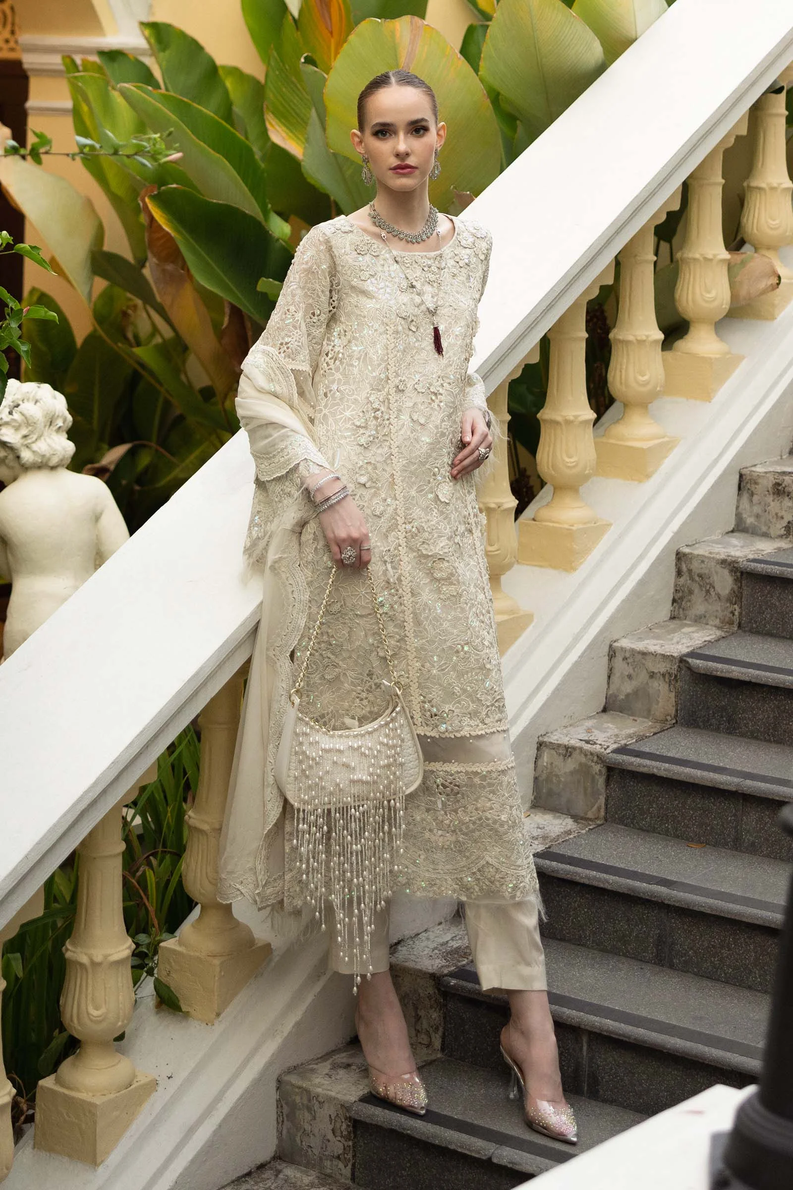 Make a stunning entrance in the Zilverah 3-Piece Embroidered Organza Suit — a breathtaking off-white ensemble crafted for women who love party wear that commands attention. Featuring laser-cut embroidery, 3D floral embellishments, pearl-adorned chiffon dupatta, and raw silk trousers, this ready-to-wear masterpiece is designed for Eid, formals, and festive evenings. Priced at PKR 53,000 with free delivery across Pakistan — order now and own luxury pret at its finest.