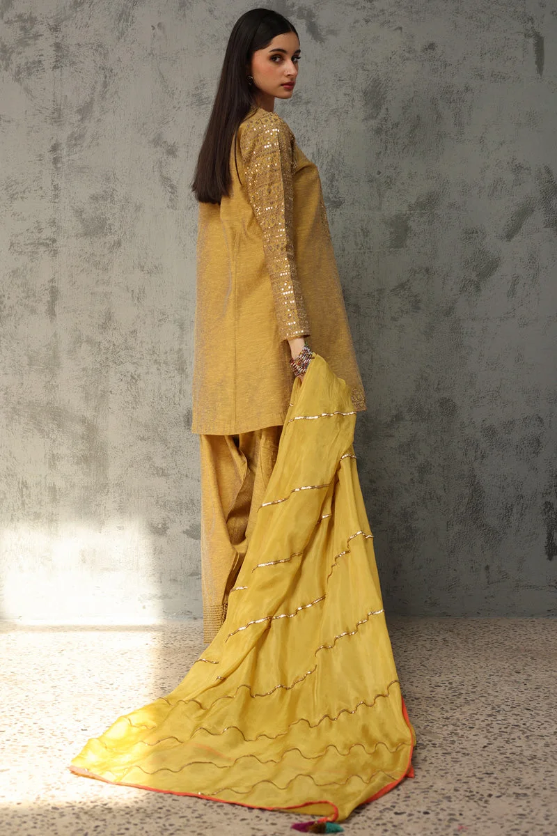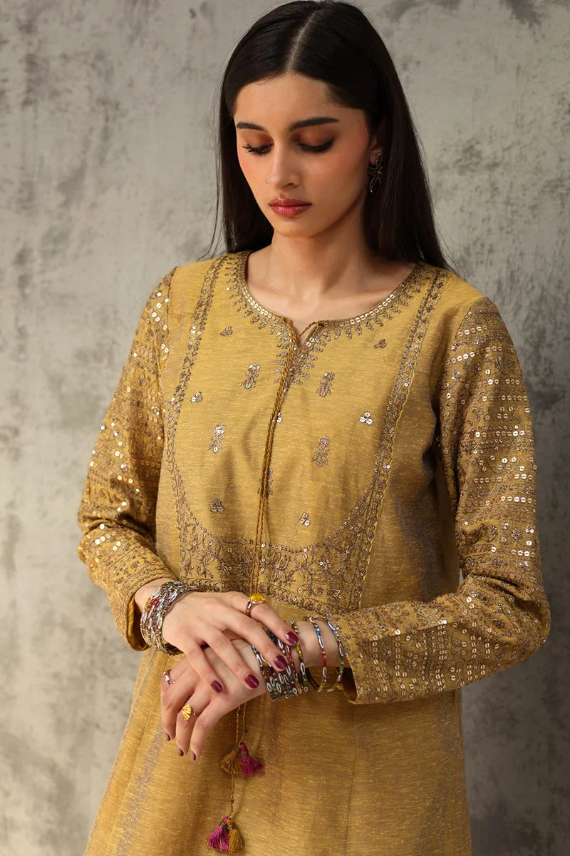 Discover the pinnacle of Pakistani formal wear with the Zilverah Golden Sequin Farshi Suit — an exquisite 3-piece outfit that blends regal craftsmanship with contemporary elegance. Whether you’re dressing for a walima, Eid gathering, or a star-studded wedding in Lahore or Karachi, this golden ensemble is your ultimate style statement. Available for Pakistani dress online shopping with fast, reliable delivery delivered across Pakistan.