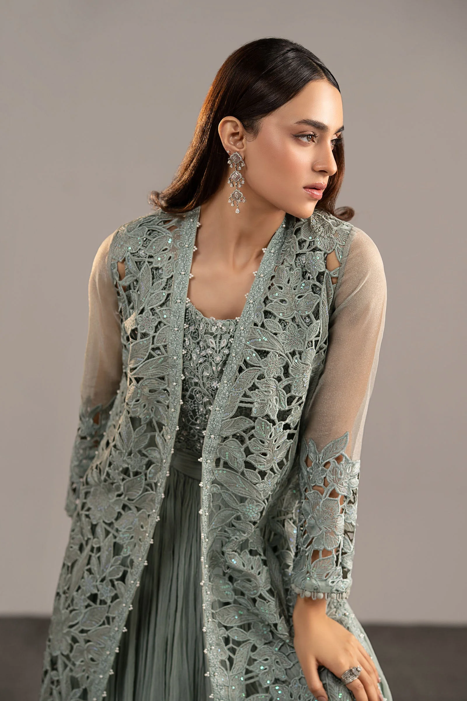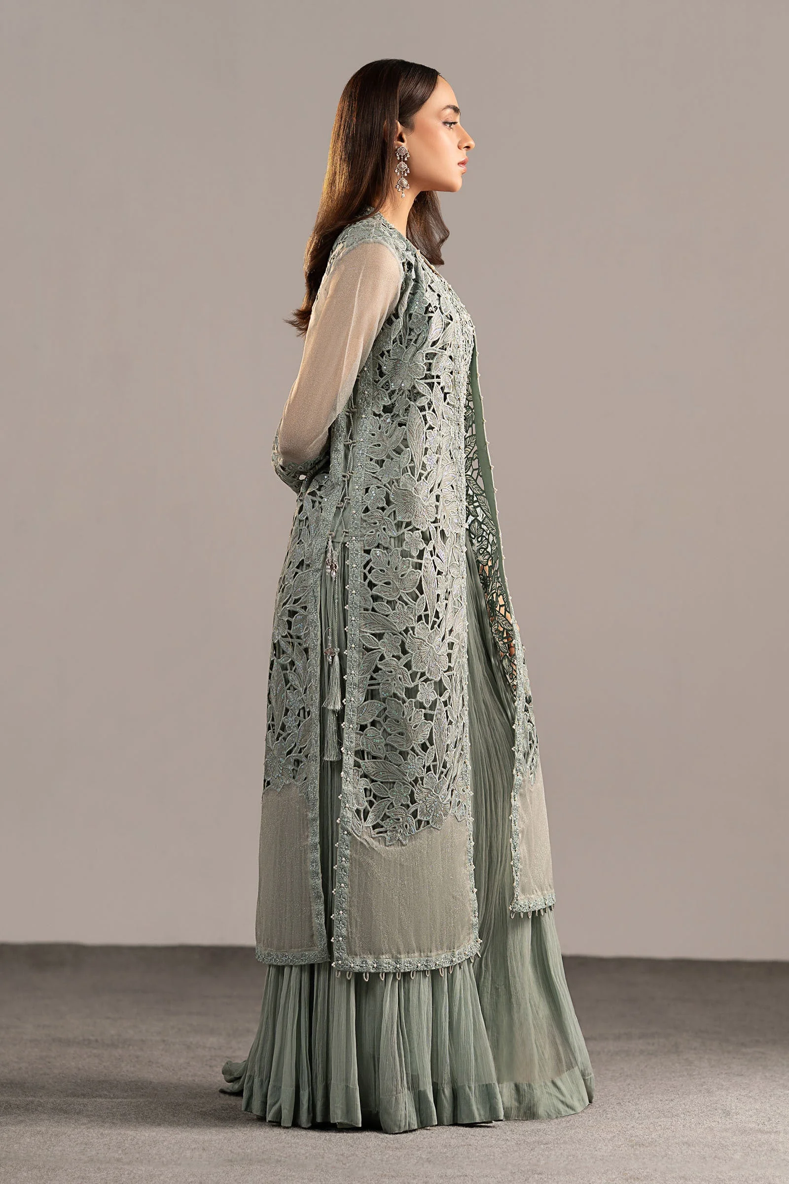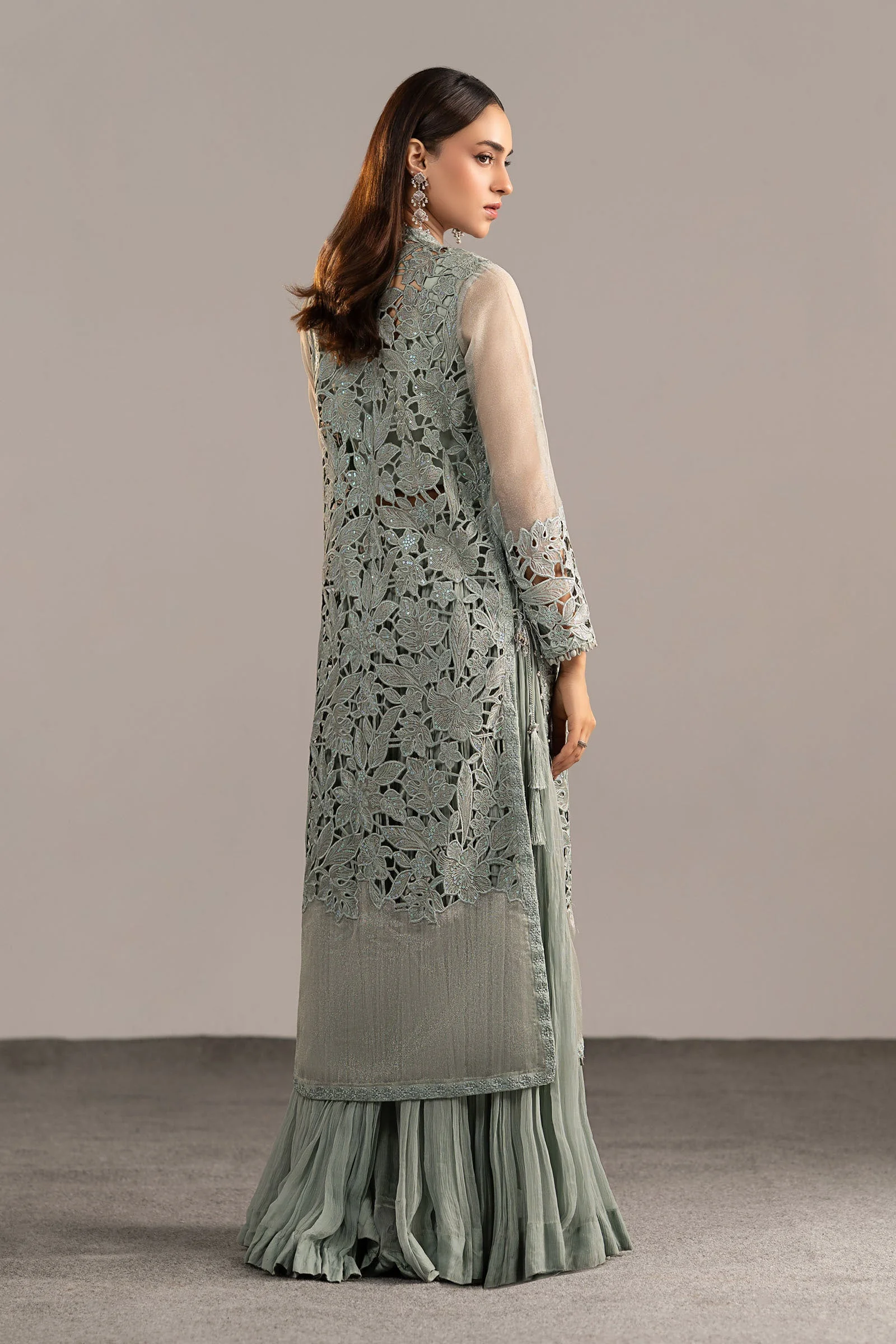 Style this ice blue sharara suit with silver jhumkas and strappy heels for a classic bridal guest look. Add a statement clutch and a soft updo to let the embroidery shine. Women in Lahore, Karachi, and Islamabad are already pairing this look with oxidised silver jewellery for the ultimate festive aesthetic.