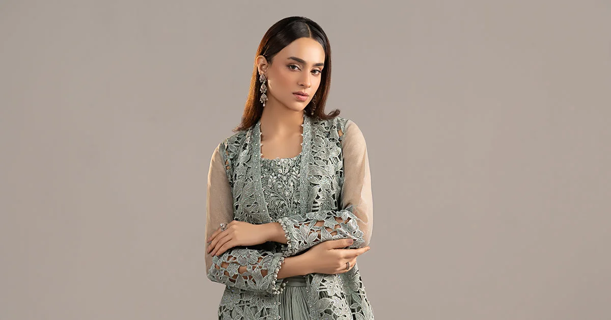 Discover the elegance of Zilverah’s Ice Blue Embroidered Zari Organza Sharara Suit — one of the most coveted pieces in our luxury formal wear collection this season. Designed for the discerning Pakistani woman who seeks sophistication without compromise, this 3-piece masterpiece brings together artisanal embroidery, premium fabrics, and a silhouette that flatters every figure. Whether you’re shopping for Pakistani dress online for a wedding, Eid, or a grand evening event, this suit delivers timeless glamour straight to your doorstep.