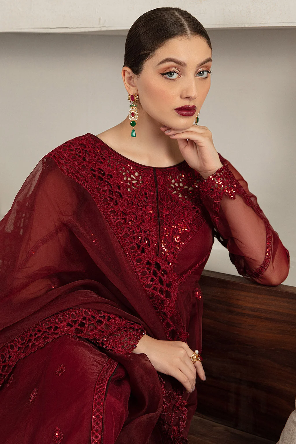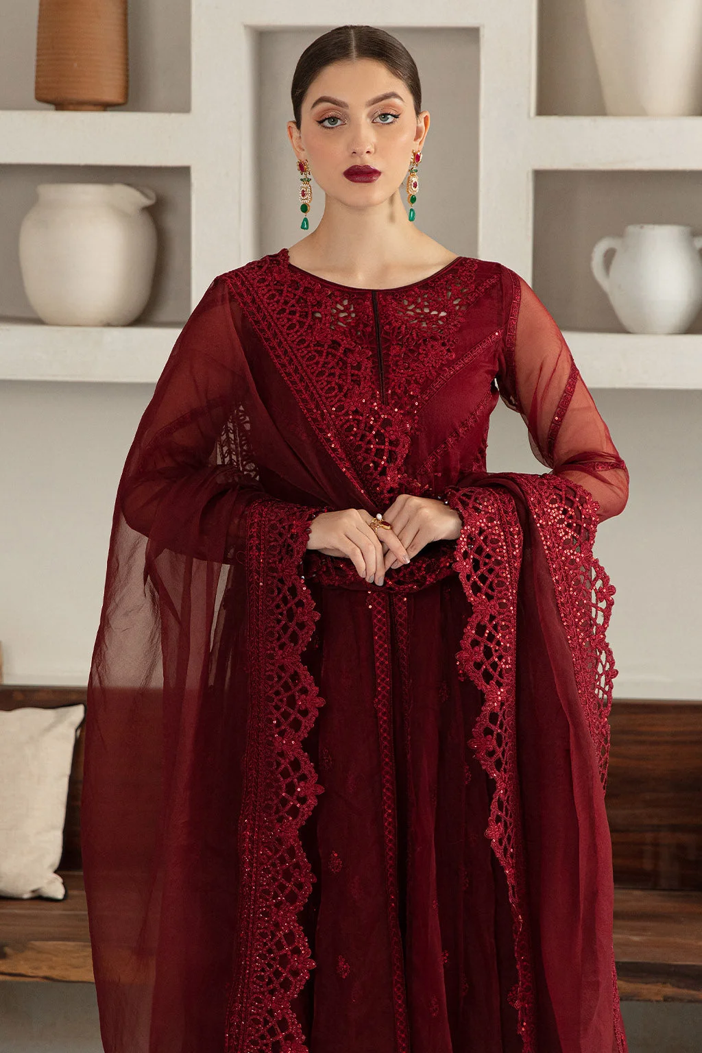 Step into every celebration with unmatched poise in Zilverah’s Maroon Embroidered Pishwas — a masterpiece of Pakistani luxury party wear designed for the modern woman who refuses to compromise on style or sophistication. Whether you’re attending a grand wedding in Lahore, a festive Eid gathering in Karachi, or an elegant mehndi in Islamabad, this gown is crafted to make you the centre of attention.