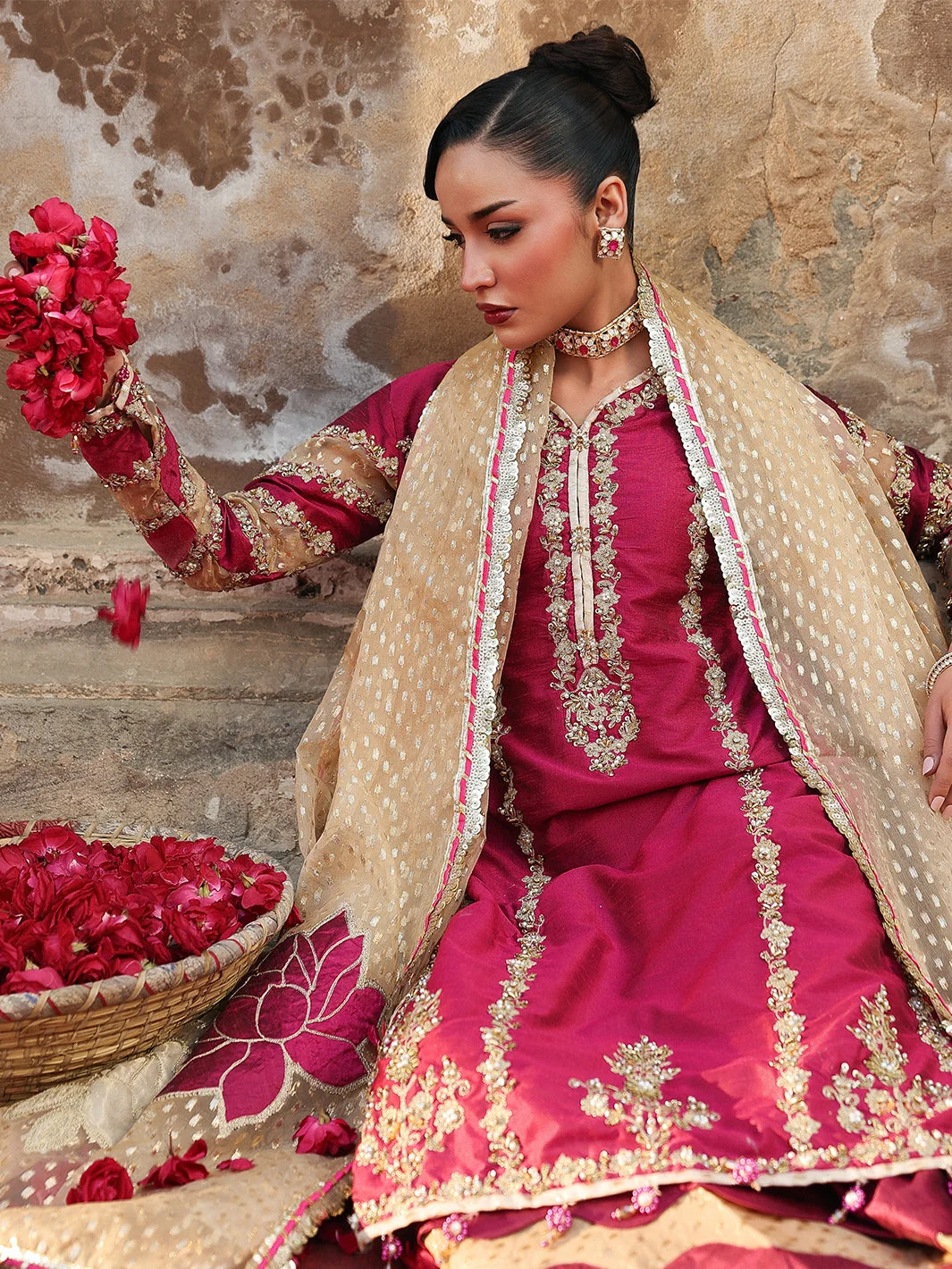 When it comes to formal wear that commands attention, few ensembles can match the opulence and artistry of this Zilverah raw silk 3-piece masterpiece. Designed for the modern Pakistani woman who values both heritage craftsmanship and contemporary elegance, this outfit is a celebration of intricate hand-embellishment and premium fabric — perfect for weddings, formal dinners, and festive occasions across Pakistan.