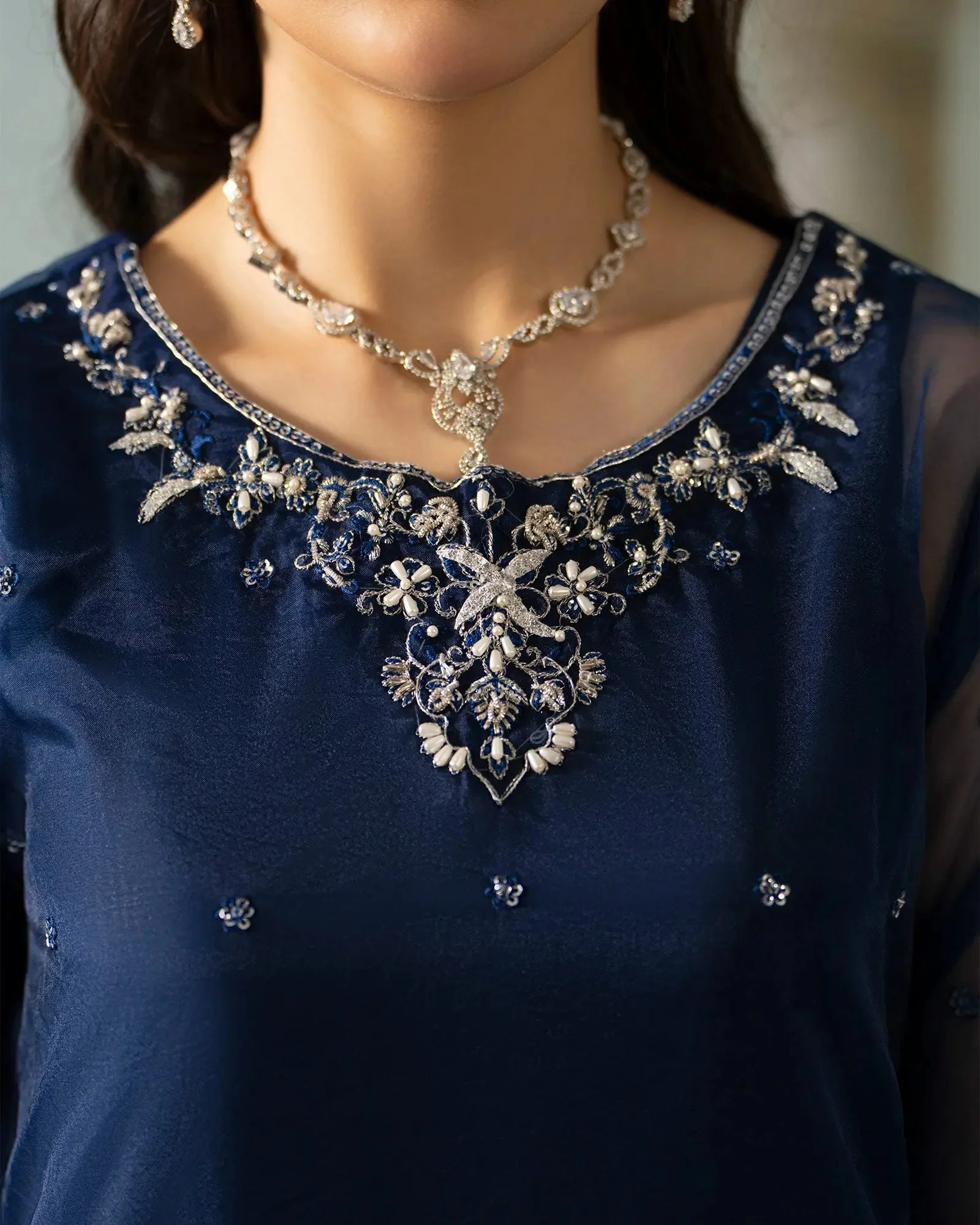 Crafted with care and quality at the forefront, this ensemble uses premium fabrics selected for their luxurious feel and graceful drape: