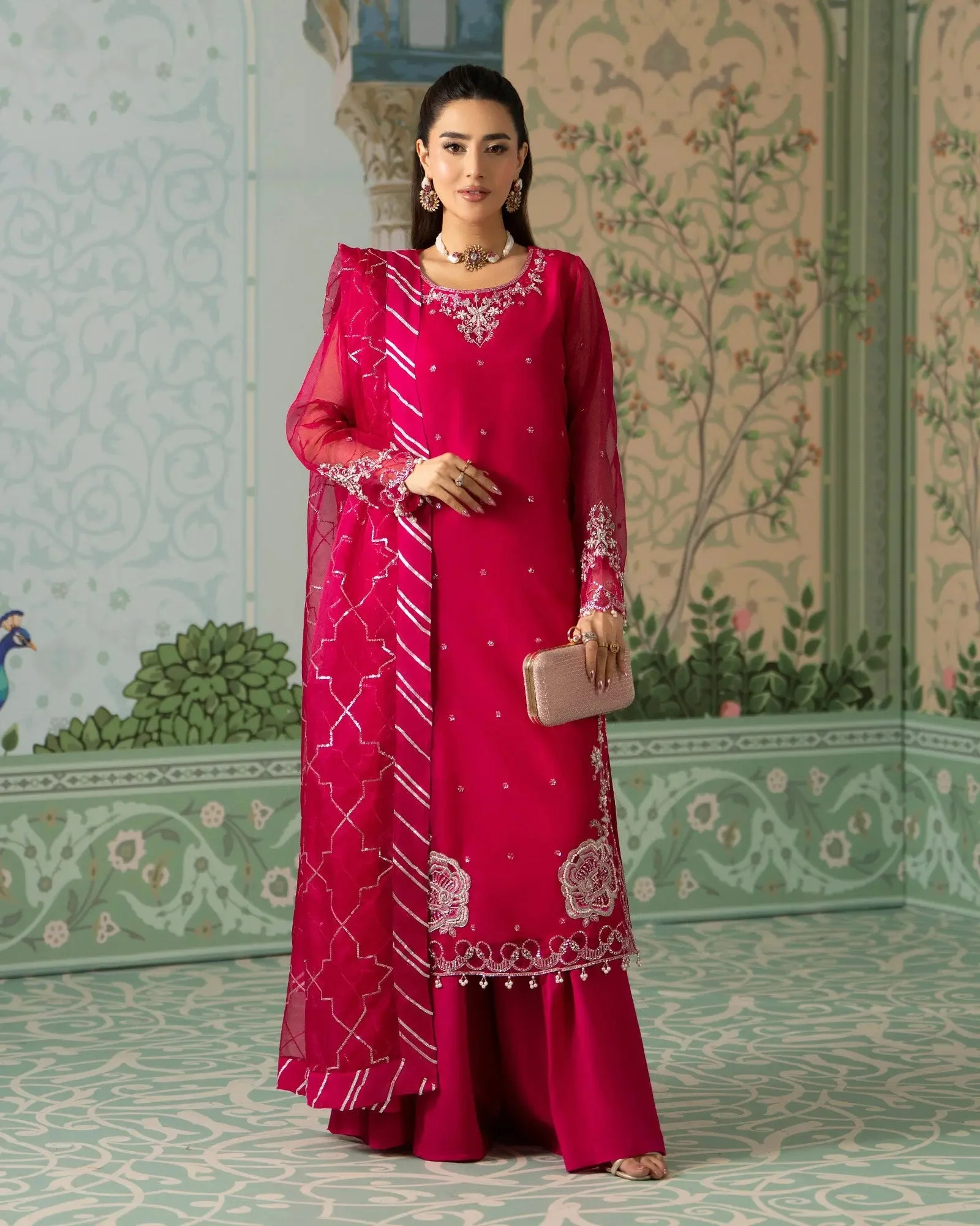 Discover the elegance of Zilverah’s Semi Pure Organza Sharara 3PC — a masterpiece of Pakistani formal wear that blends timeless craftsmanship with contemporary silhouettes. Designed for the modern Pakistani woman who celebrates tradition without compromising on style, this stunning three-piece ensemble is a wardrobe essential for every special occasion. Whether you’re shopping in Lahore, Karachi, or Islamabad, this luxurious outfit is now available for Pakistani dress online shopping with convenient delivery across Pakistan.