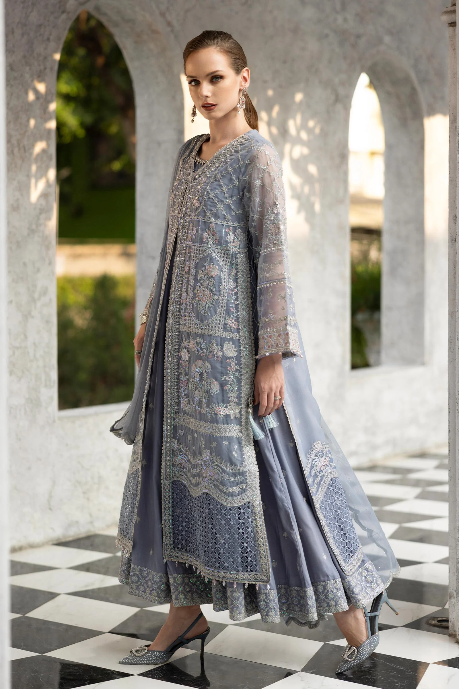 Step into elegance with this Zilverah Sky Blue Embroidered Organza 3-Piece Suit — a masterpiece of hand-embellished craftsmanship featuring a front-open jacket, sleeveless frock, and scalloped net dupatta. Crafted for women who command attention at weddings, Eid gatherings, and upscale soirées, this luxury formal wear ensemble blends delicate crystal detailing with timeless silhouettes. Order now and enjoy free delivery across Pakistan on orders above PKR 10,000.